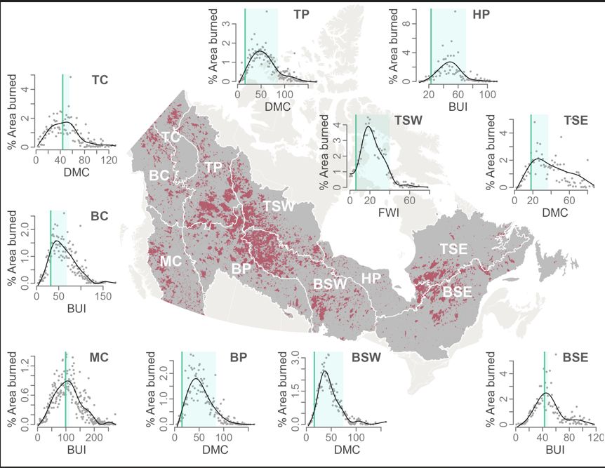 New accepted paper in Environmental Research Letters for Mike Flannigan et al. on the extent of drought determines daily area burned (DAB) in Canadian forests. This study found a strong relationship between daily area burned and the spatial extent of fire-conducive weather conditions. Open access link