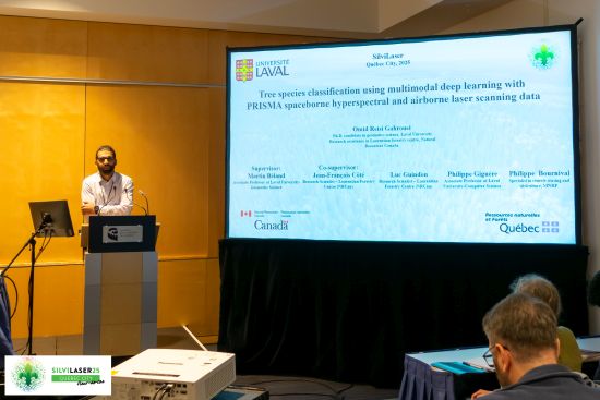 «Grâce à cet événement, j’ai eu la chance de présenter une partie de mon projet de doctorat portant sur la classification des essences d’arbres à l’aide des données LiDAR et hyperspectrales, combinées à des techniques d’apprentissage profond, dans les forêts boréales canadiennes. Ce travail vise à améliorer la classification des essences majeures des forêts boréales en exploitant les données de télédétection avancées, capables de caractériser les arbres selon leur structure tridimensionnelle et leur signature spectrale.» Omid Reisi Gahrouei