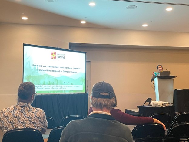 Du 5 au 8 octobre 2025, j’ai participé au 32e congrès annuel de The Wildlife Society qui s’est tenu à Edmonton en Alberta. J’y ai présenté une communication orale intitulée ‘Resilient yet constraint : How northern landbird communities respond to climate change’, dans le cadre du symposium ‘The use of species distributions models for birds (and friends!)’. Cette présentation, issue de mes travaux de doctorat que je réalise sous la direction de Steve Cumming, a exploré comment les communautés d’oiseaux terrestres du Nord canadien réagissent aux changements climatiques et forestiers, à l’aide de modèles dynamiques intégrant la végétation, le feu et les projections climatiques futures.