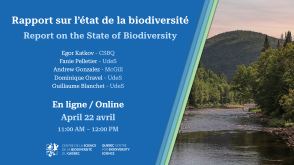 Dévoilement et consultation sur le projet du « Rapport sur l’état de la biodiversité et des contributions de la nature aux personnes (NCP) au Québec » par le Centre de la science de la biodiversité du Québec.